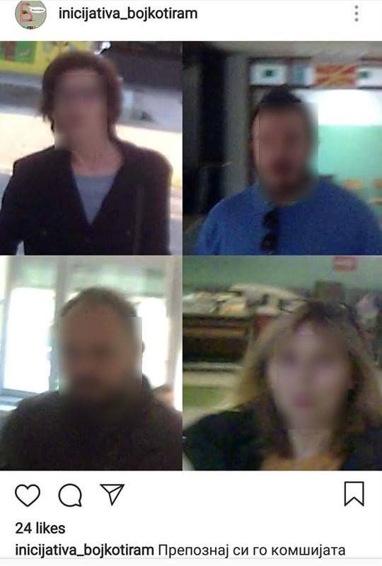 Под фотографиите на кои јасно се гледаат лицата на граѓаните кои излегле на гласање пишува „препознај си го комшијата“ и „северџани“, како и името и презимето на еден од гласачите.