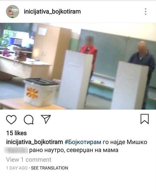 Од иницијативата „Бојкотирам“ на својот инстаграм-профил во текот на вчерашниот ден, додека траеше гласањето за референдумот, поставуваа слики од граѓани како одат на гласање и како гласаат на изборните места, иако тоа е спротивно на законот.