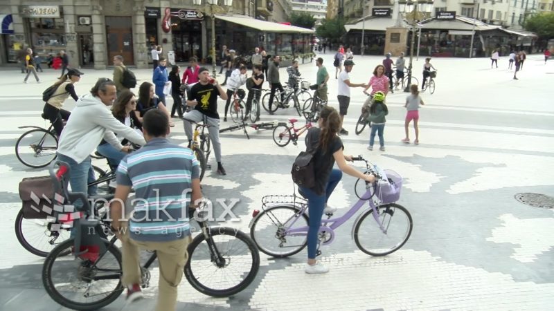 Велосипедистите, кои денеска се собраа на плоштадот во знак на потест, кќе извозат 10 километри низ скопските булевари, а рутата ќе ја завршат во Градскиот парк.