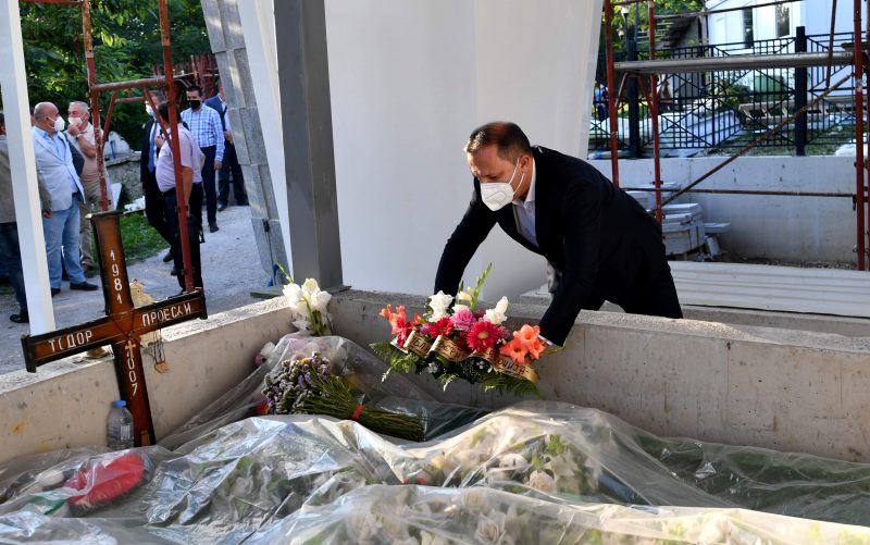Пред отворањето, премиерот Спасовски, заедно со градоналникот на Општина Крушево, Томе Христоски и градоначалникот на Општина Кривогаштани, Рубинчо Шефтеровски положија свежо цвеќе на гробното место на Тоше Проески.