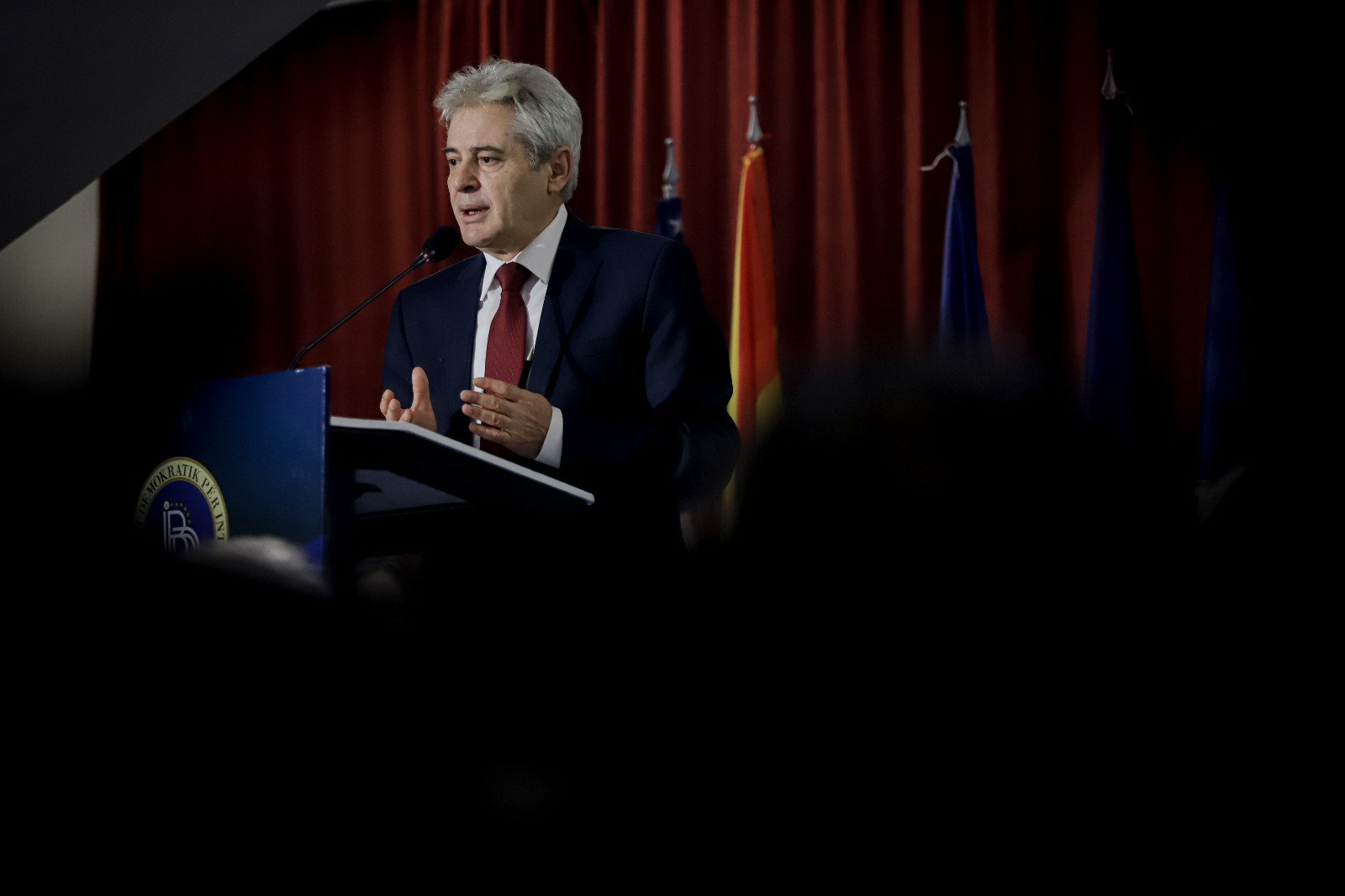„Ова не му се допаѓа на Мицкоски и знам зошто, не отидов во Хаг затоа што борбата ми беше праведна, па нека не ми одговара со калаш. Тој ја гледал војната само на телевизија, додека јас сум потпишал меѓународни договори. Зошто инвестираме во стабилност? Придонесовме за решавање на спорот со името, преговораме со ЕУ со единствена цел на овој регион да му ја загарантираме мирот и стабилноста. Времињата се променети, не треба да ги повторуваме трагедиите, туку треба да размислуваме за нови можности. Имаме рани кои не зараснуваат така лесно, многу луѓе загинаа за оваа земја, но одмаздата не е решение. Косово мора да најде решение со Србија, бидејќи во овие времиња Русија е заинтересирана за крвопролевање и конфликти. Градејќи го проеропскиот фронт се приклучуваме кон прогресивни процеси, кон нови стандарди, така што ниту Мицкоски ниту Албанците кои работат покрај Мицкоски не можат да го спречат ова затоа што ние сме за напредок, а не за уназадување. Членството во ЕУ ја запира имиграцијата, ја зајакнува економијата, платите и животниот стандард, така што членството во ЕУ дефинитивно мора да се случи, бидејќи ова е наша заедничка жртва за да постигнеме успех“, изјави Ахмети.
