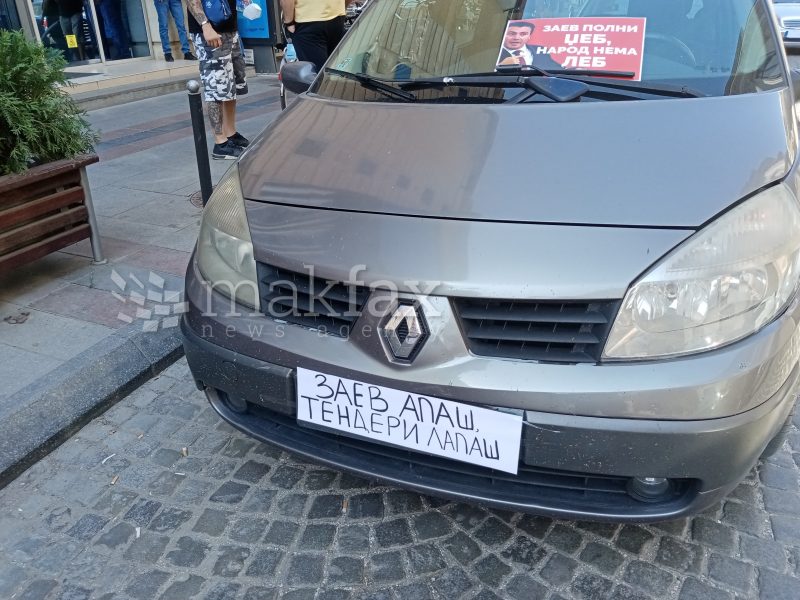 Партиските членови на протестот дојдоа со автомобили, на кои наместо таблички имаше транспаренти – „Живот на вересија“, „Заев апаш, тендери лапа“, „Доле влада“ и слично.