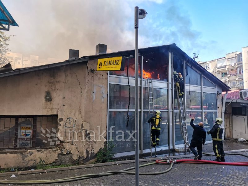 Во непосредна близина има и продавница за чевли, која досега не е зафатена. Пожарот избувнал на булеварот 11 Октомври.