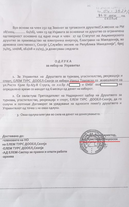 Каевски истакна дека Ивица Томовски, човекот што секој ден од белиот дворец, од симболот на криминалот и корупцијата, зборува за паразити и самиот е паразит на ВМРО-ДПМНЕ кој земал огромни пари од граѓаните во време на ВМРО-ДПМНЕ. Со потпис на Христијан Мицкоски, Ивица Томоцски од ВМРО-ДПМНЕ бил избран за Управител на ЕЛЕМ Турс ДООЕЛ Скопје во 2017 година. Ова е тој документ. Само од плати Томовски добивал над 2 денари или над 30.000 евра.