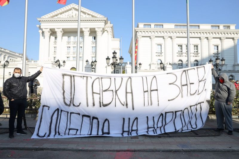 „За жал, овие понизни и сервилни политики на Владата предводена од Зоран Заев нè доведоа во една ваква ситуација, буквално помеѓу асимилација и интеграција. Затоа час поскоро оставка и затоа ги повикувам скопјани и утре со почеток во 15 часот заклучно со 16:30 да ни се приклучат овде пред платото на Владата, но и пред Министерството за надворешни работи повторно да го изразиме нашиот револт против овие политики коишто на таинствен начин ги води Владата на Зоран Заев. Оние преговори за кои Зоран Заев велеше дека се водат на ниво на работни групи, а, пак, оние гласноговорници на СДСМ поитаа да го демантираат Зоран Заев и да кажат дека нема такви преговори.