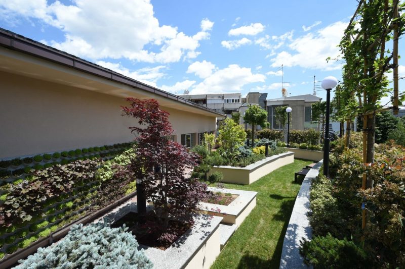 Градот Скопје во соработка со УНДП го уреди вториот зелен покрив во строгиот центар на градот – покривот на Домот на културата „Кочо Рацин“, попознат како Домот на градежници. Според проектот, на површина од речиси 400 квадратни метри се засадени над 30 различни видови садници – дрвја, средно и ниско зеленило кое е функционално распоредено, има тревна површина и вертикално зеленило на ѕидовите, а поставени се и клупи и канделабри.
