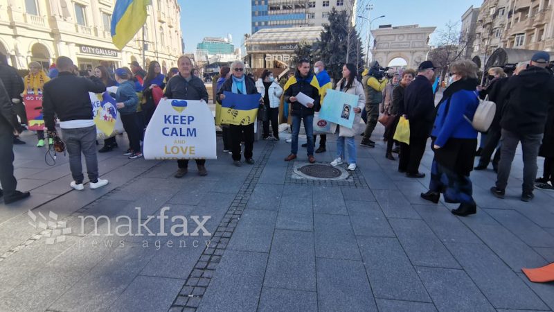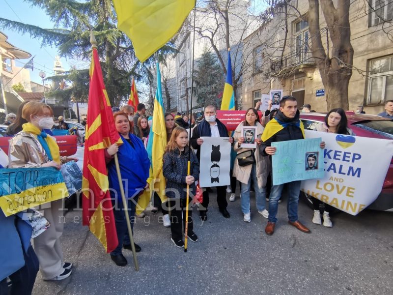 Путин фашист“, „Стопирајте ја војната во Украина“, „Путин убиец“, „Путин убива деца“. Со извикување на овие пароли по скопските улици, од плоштадот до Руската амбасада, се одржа протестот со кој се бара Русија да ја прекине војната против Украина.