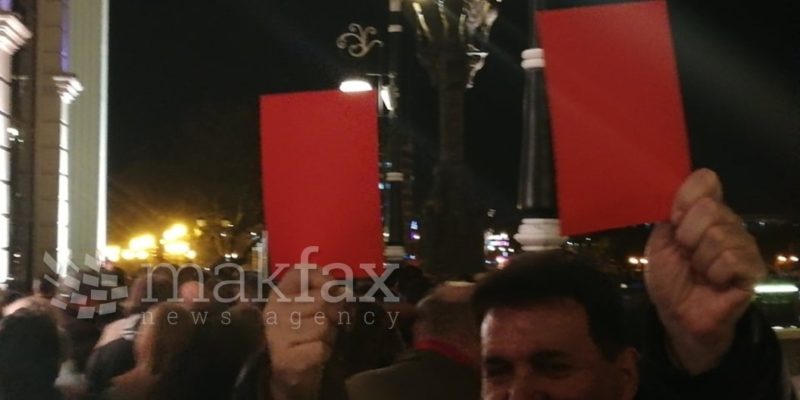 На протестот присуствува и лидерот на партијата, Христијан Мицкоски, кој ќе се обрати пред присутните.