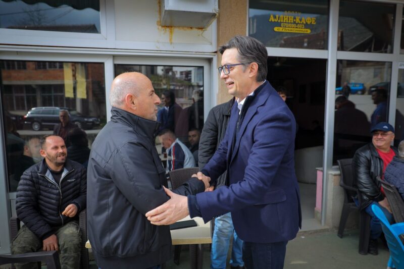 Претседателот Стево Пендаровски, во рамките на проектот „Лице в лице со претседателот“, денеска, во селото Требош, општина Желино, ја посети компанијата „Везе шари“.