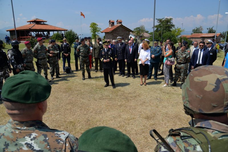 Дел од програмата беше и посета на касарната „Илинден“, каде што пред високиот гостин беа изведени показни вежби од страна на припадниците на Полкот за специјални операции. По средбата и по демонстрацијата на армиските капацитети, министерката за одбрана, Шекеринска, во изјава за медиумите истакна дека денешната посета и соработката покажуваат колку работите во Македонија се менуваат по 11 јули кога Македонија ја доби поканата за почеток на пристапните разговори во НАТО.