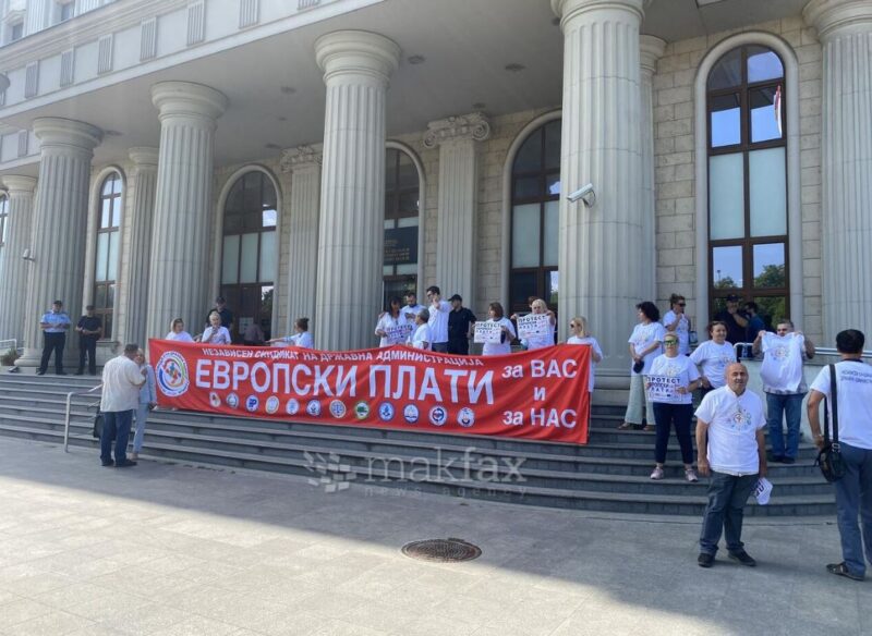 Членови на Независниот синдикат за судска служба на Македонија повторно излегоа на штрајк бидејќи повеќе месеци не добиле додатоци од 35 отсто на платата.