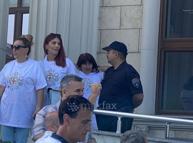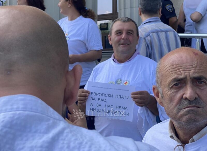 Тие им порачаа на функционерите „Европски плати за вас, а за нас нема додатоци ни 25 %“. Протестот почна со песната „Бела, чао“, која се користи како химна на слободата и отпорот.