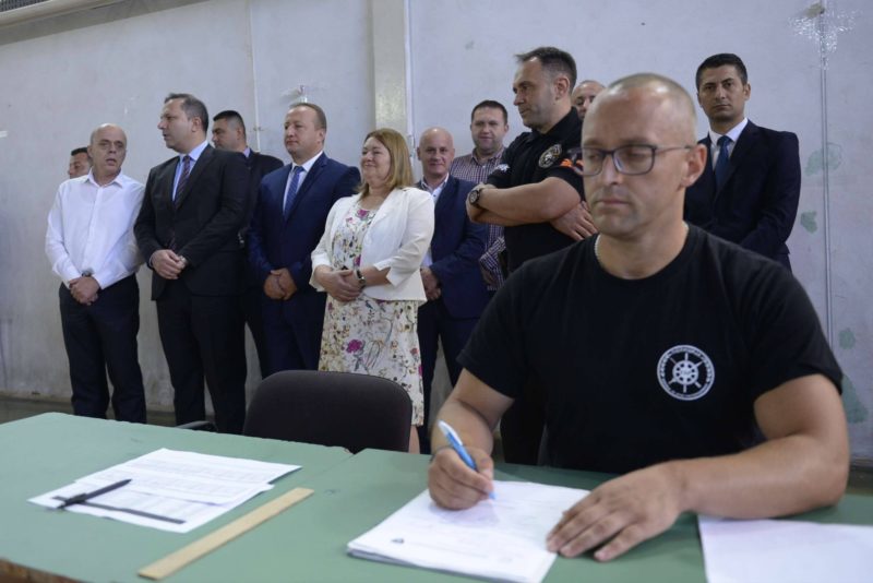 „По завршувањето на секој од тие модули во кои е опфатен период од тромесечна теоретска обука и еден месец практична настава, кандидатите ќе бидат оценувани за постигнатото, така што на крајот, односно со истекот на целата обука ќе имаме конечна ранг-листа по којашто избраните 600 кандидати ќе склучат договори за вработување со министерството на работна позиција приправник полицаец, со обврска најмалку пет години да работат во Министерството за внатрешни работи. На пријавените кандидати им посакувам успех“, рече министерот Спасовски.
