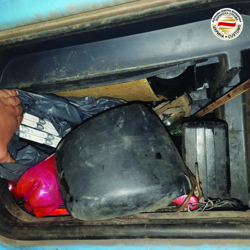 – На излез од државата на Меѓународен Аеродром Скопје, царински службеници спречија криумчарење на 60 штеки цигари, што косовски државјанин сакал нелегално да ги изнесе од државата и по воздушен пат да ги внесе нелегално во Лондон. Штеките цигари се откриени при контрола на багажот на патникот. Цигарите се привремено задржани, а против патникот е поведена прекршочна постапка.