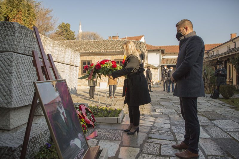 Владина делегација и претставници од СДСМ и ВМРО-ДПМНЕ утрово положија цвеќе на гробот на револуционерот Гоце Делчев во црквата „Свети Спас“ по повод 149 години од неговото раѓање.