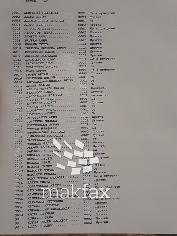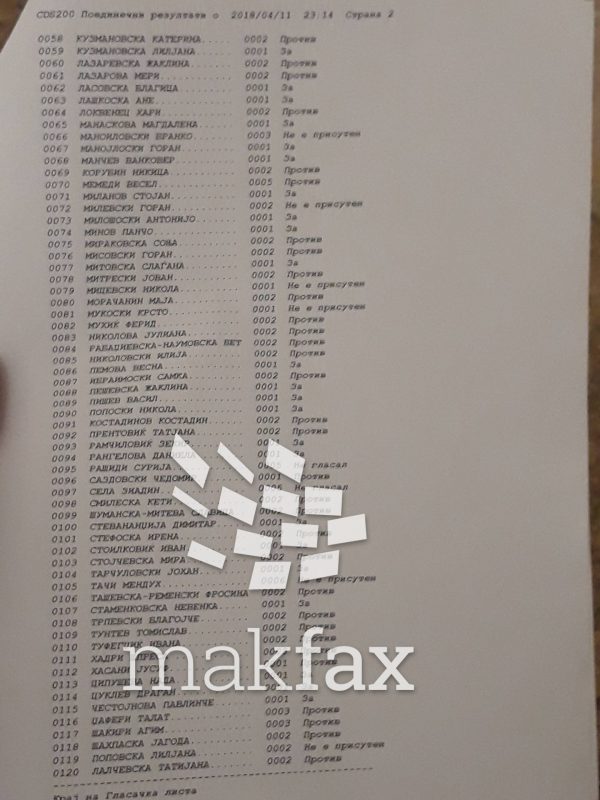 Пратениците Узеири Ферати Мерал и Мемеди Реџеп биле воздржани, а Зијадин Села не гласал.