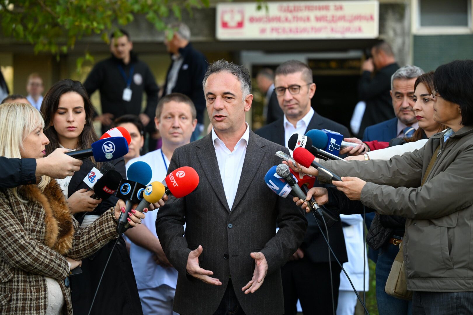 „Чекор по чекор. Сега првин да завршат локалните избори, па да се распише јавен повик за финансиски институции за болниците, кои се поврзани со договорот влада со влада со Обединетото Кралство. Да заживее тоа, па следно е големиот клинички центар. Инаку, навистина овде изгледа како одлична можност, одлична локација – три булевари, гасна поврзаност, сообраќајна поврзаност, така што ајде да видиме, да оставиме експертите да си го кажат своето мислење“, рече премиерот Мицкоски денес одговарајќи на новинарски прашања по постеата на болницата „8 Септември“, во која почна да функционира хибербарната комора за третман на хронични рани, дијабетично стапало, изгореници, како и поддршка за пациенти од платична хирургија, пулмологија, а ќе функционира и како поддршка за спортисти.