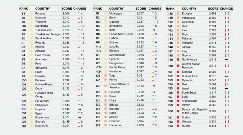 Глобален индекс на мирот 2025: Русија најнебезбедна земја во светот, Македонија на 51. место