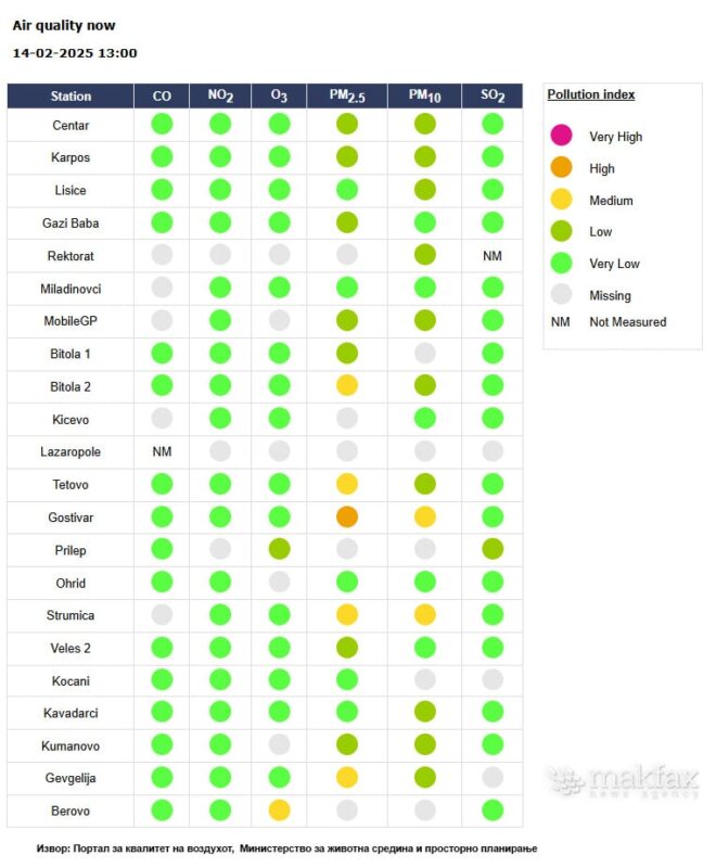 Министерството за животна средина и просторно планирање, и покрај нецелосните податоци во мерните станици, вели дека државниот автоматски мониторинг-систем за квалитетот на амбиенталниот воздух, генерално, е во добра состојба, сите мерни станици се во функција, но со оглед на тоа што се во континуиран режим на работа, има одредени дефекти на инструментите.