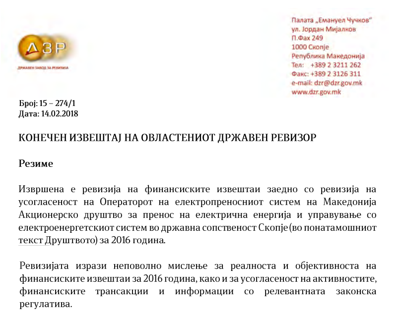 Вработени во АД МЕПСО си поделиле регрес за годишен одмор за 2016 година, кој го надминува законскиот лимит, покажа анализата на државниот ревизор, кој изразува неповолно мислење за реалноста и објективноста на финансиските извештаи. Од проверката на извештајот што ја направи „Макфакс“ произлегува дека Надзорниот одбор донел одлука за исплата на популарното К15, но износот бил исплатен спротивно на Законот за платата. „Исплатен е регрес за годишен одмор од 22.256 денари врз основа на одлука на Надзорниот одбор“, пишува во образложението.