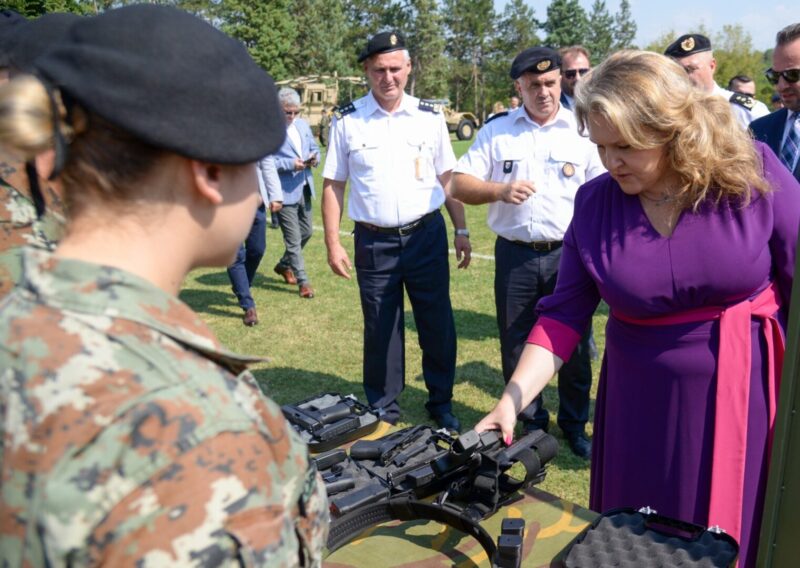 Министерката Петровска во своето обраќање истакна дека се гордее на професионализмот, мотивот и на посветеноста со кои почнаа и се реализираат силни реформски зафати во одбраната.
