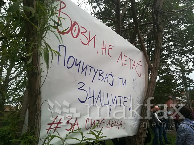 Учесниците на протестот поставија транспаренти на кои пишува: „Внимавај како возиш, можеби твоето дете ја поминува улицата!#за сите деца“, „До полицијата: Кога правите записник, слушајте ги сведоците, а не како што му одговара на злосторникот“ и „Вози, не летај. Почитувај ги знаците“.