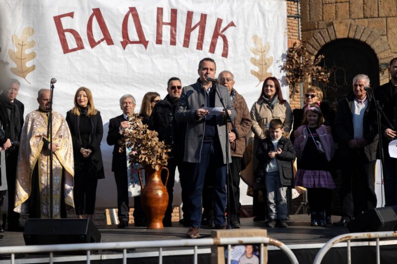 Пред присутните граѓани меѓу кои и здравичарот Иванчо Стефков, бадникарскиот кум за 2023 година Мојсо Мојсовски и кумовите Драган Спасов Дац и Александар Митевски, Градоначалничката на Град Скопје Данела Арсовска свое обраќање имаше градоначалникот Горан Герасимовски.