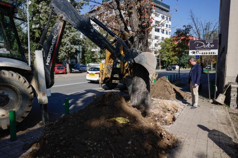 За таа цел, Општина Центар ја информира јавноста дека отстрането е едно дрво, кое беше исушено, а пресадени во Зоолошката градина се 3 возрасни дрвја, кои се јавно зеленило на предвидената траса во согласност со правосилно решение, издадено од Град Скопје на 13.10.2022 година. Во согласност со решението и определбата на Општината за зголемување на јавното зеленило и површини како врвен приоритет, Општина Центар ќе изврши компензациско садење дрвја, постари од 6 години, со вкупно двоен пречник од постојните. Односно, по завршување на градежните работи, Општина Центар на новопроектираната улица ќе засади 6 висококвалитетни повеќегодишни и развиени дрвја, вградени во двата предвидени тротоара за движење пешаци. Во пролетниот период в година Општина Центар ќе изврши дополнително хортикултурно уредување на потегот на улицата со засадување садници, кои ќе влијаат на подобрување на изгледот на улицата и ќе придонесат за намалување на бучавата.