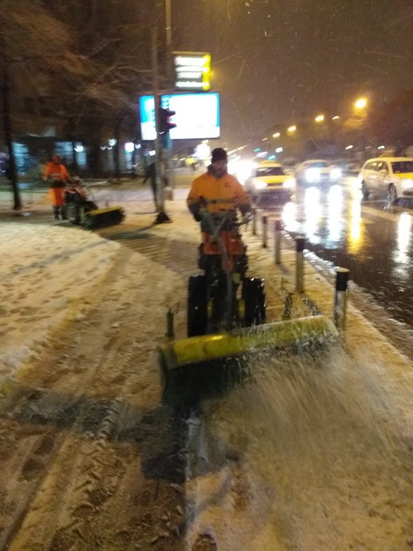 Со 40 работници од дежурната служба, ЈП „Комунална хигиена“ – Скопје вечерва спроведува активности за чистење на снегот од скопските булевари и поголемите градски улици.