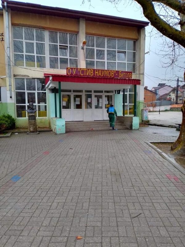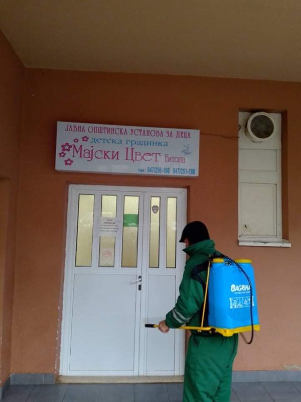 Екипите на ЈП „Комуналец“ утрово извршија вонредна дезинфекција пред сите градинки, основни и средни училишта и високо образовни институции, како и на автобуските постојки во Битола.