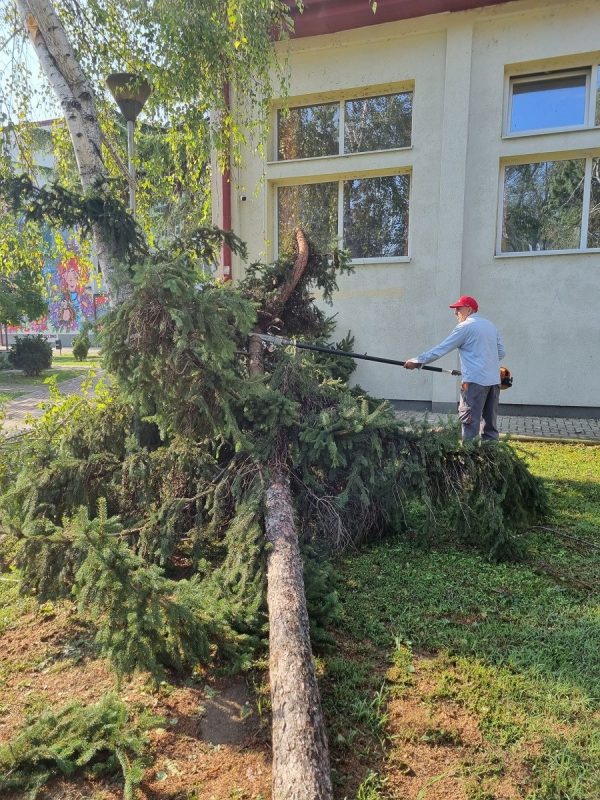 Службите на Општина Центар изминатото деноноќие се на терен, ги расчистуваат паднатите дрвја и гранки и на одредени локации ги санираат штетите настанати од вчерашното невреме кое го зафати Скопје.