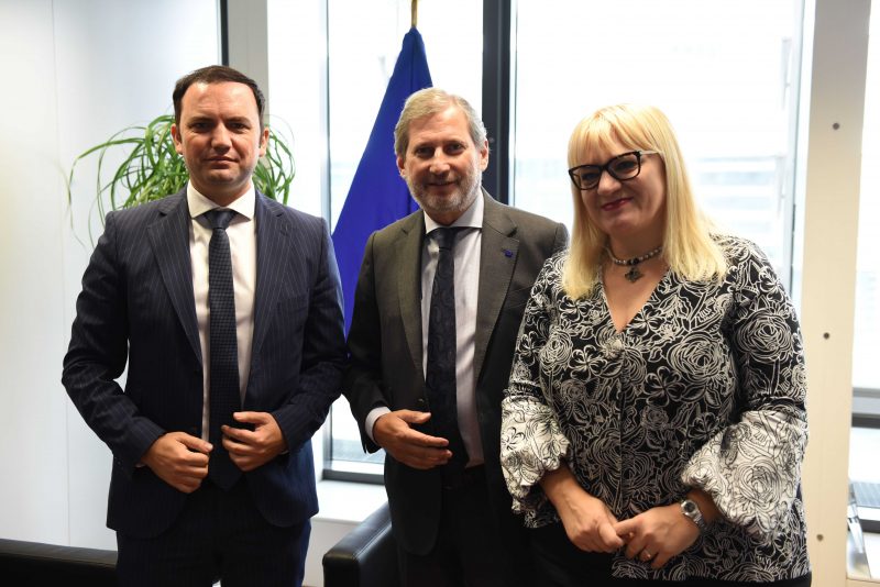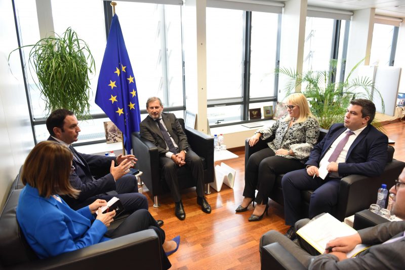 Заменик Претседателот на Владата и главениот политички преговарач, како и Шеф на Делегацијата за преговори со ЕУ, Бујар Османи, министерката за правда, Рената Дескоска, посебниот советник за евроатлантски интеграции на претседателот на Владата и главен технички преговарач, но и шеф на техничкиот преговарачки тим, Бојан Маричиќ и државната секретарка при Секретаријатот за европски прашања Калинка Габер остварија средба со еврокомесарот соседска политика и преговори за проширување на Европската унија, Јоханес Хан, соопштија од Владата.
