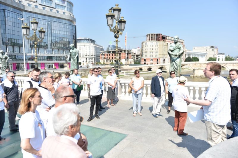 Туристичката тура започна пред МК-ЕУ Инфо Центарот на СЕП на градскиот плоштад, и продолжи во Стара скопска чаршија каде професионален туристички водич им ги презентираше позначајните локации и знаменитости на градот: Камениот Мост, плоштадот „Мајка Тереза“, паркот „Ибни Пајко“, Даутпашиниот амам, црквата „Св. Димитрија“, плоштадот „Скендер-бег“, Чифте Амам, Сули ан и џамијата Ќосе Кадиа, а прошетката заврши со традиционално турско кафе и чај во локалите на чаршијата.