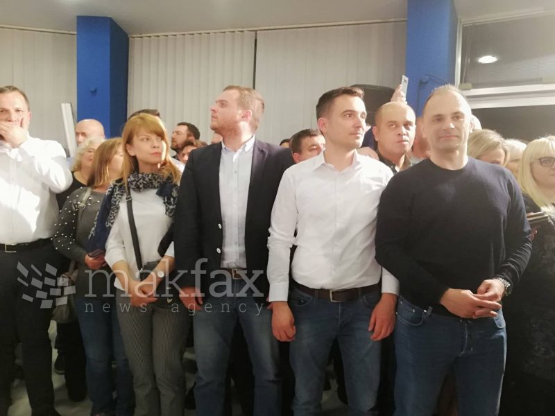 Освен министрите и високите функционери, во партиското седиште на владејачката партија има поддржувачи кои веќе цел час играат оро со зурли и тапани, откако генералниот секретар на партијата, Александар Кирацовски, и портпаролот на СДСМ, Костадин Костадинов, прогласија победа на Стево Пендаровски.