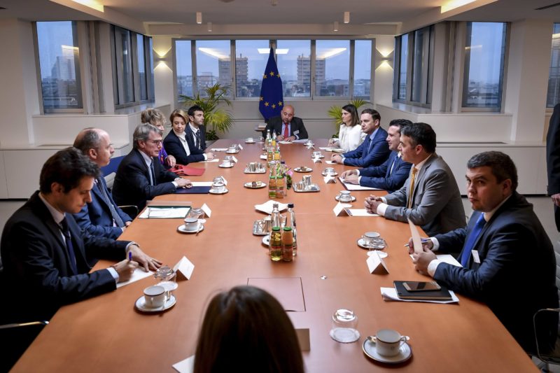 Премиерот Зоран Заев во рамките на неговата агенда во Брисел вечерва се сретна со претседателот на Европскиот парламент, Давид Мариа Сасоли.