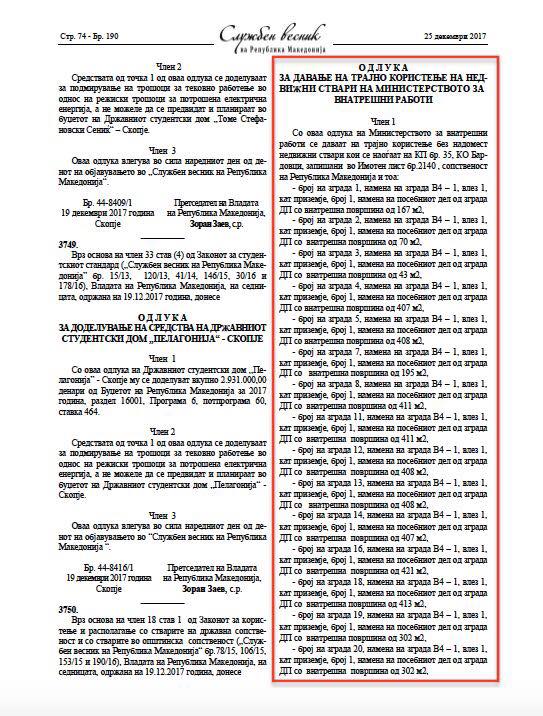„Одлуката за изградба на Центар за прифат на странци е помината на 45. седница на Влада (точка 151) одржана на 17 декември минатата година. Потоа, истата е објавена во Службен весник на РМ бр. 190, страна 74 и страна 75 од 25 декември 2017. Со оваа одлука префрлени се згради кои се наоѓаат на КП 35, КО Бардовци, запишани во Имотен лист бр. 2 140, на трајно користење на МВР, за да може преку ИПА фондовите на ЕУ да се добијат пари од Брисел за изградба и реновирање на објекти за прифаќање на странци“, објаснуваат од Демократската Фракција на ВМРО-ДПМНЕ и додаваат дека во одлуката наведени се 22 згради со вкупна површина од 4 827 метри квадратни кои треба да се пренаменат и реновираат.