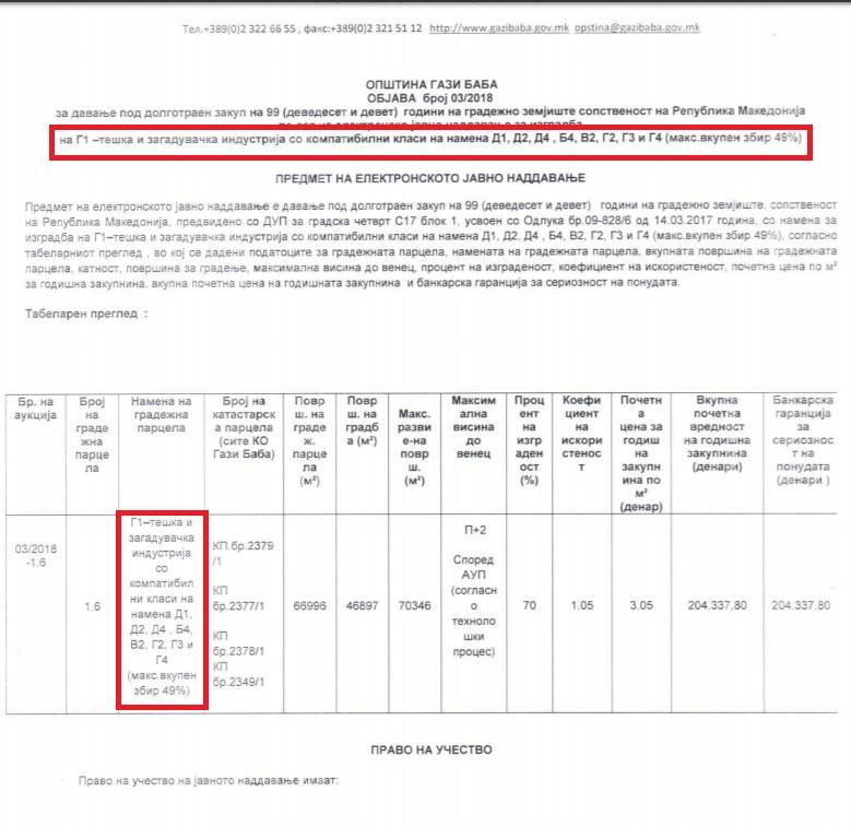 Од О2 Иницијативата информираат дека испратиле барање до градоначалникот на општина Гази Баба, Борис Георгиевски, претседателот на Советот, Тони Бојковски, и советниците, веднаш да го прекинат јавниот повик за изградба на Г1 – тешка и загадувачка индустрија со давање под долготраен закуп на 99 години градежно земјиште во сопственост на РМ.