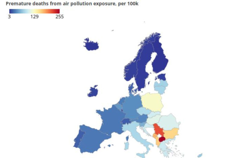 Според извештаите на Европската агенција за животна средина, изложеноста на PM2.5 честичките предизвикало околу 239.000 предвремени смртни случаи во Европа во 2021 година, додека уште 48.000 луѓе починале како резултат на изложеност на азот диоксид.