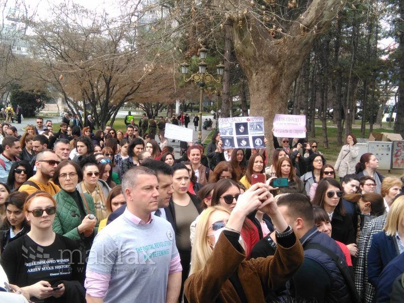 Протестниот марш го организира платформата за родова еднаквост во која членуваат 22 невладини организации. На маршот пртестираа и министрите Дамјан Манчевски и Мила Царовска, а во толпата беше присутна и Гордана Силјановска Давкова, претседателскиот кандидат на ВМРО-ДПМНЕ.
