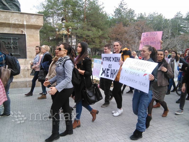 Маршот за правата на жените тргна од паркот Жена борец, па преку Центар до плоштадот „Филип II“. Притоа активистките за женски права гласно извикуваа „не сакаме рози, сакаме права“.
