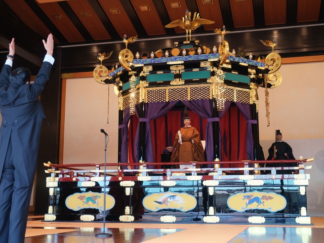 Во рамки на церемониите се одржуваат два свечени настани, односно официјалната церемонија на устоличување на императорот, проследена со свечен прием во Империјалната палата, како и официјален прием приреден од страна на премиерот Шинзо Абе.