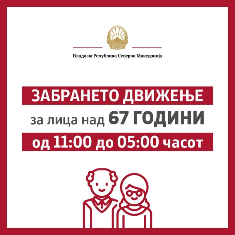 Дополнително, Владата донесе одлука да се забрани движењето на граѓаните над 67 години од 11 до 5 часот следниот ден.
