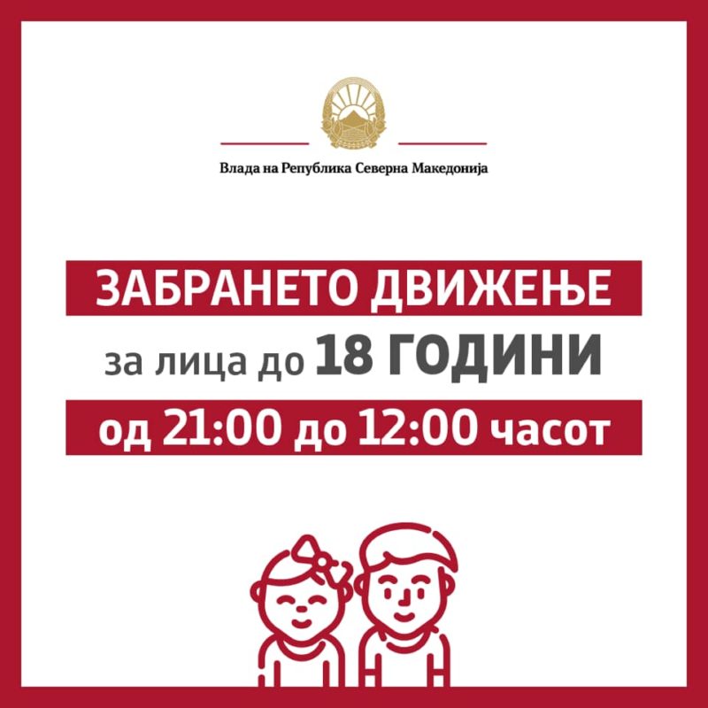 Владата на вечерешната седница донесе уште една одлука за ограничување на движењето на младите до 18 години и за нив забраната за движење ќе почнува во 21 часот и ќе трае до 12 часот наредниот ден.