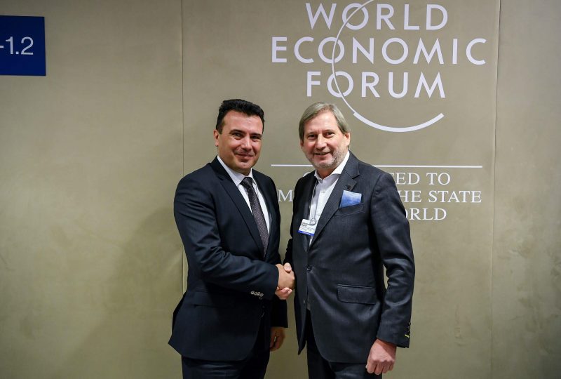 Претседателот на Владата, Зоран Заев, придружуван од заменик-претседателот на Владата задолжен за економски прашања и за координација со економските ресори, Кочо Анѓушев, и од министерот за економија, Крешник Бектеши, во рамките на агендата за време на неговото учество на владината делегација на Светскиот економски форум во Давос, Швајцарија, денеска оствари средби со комесарот за проширување на ЕУ и за соседска политика во Европската Комисија Јоханес Хан, и со генералниот секретар на НАТО, Јенс Столтенберг.