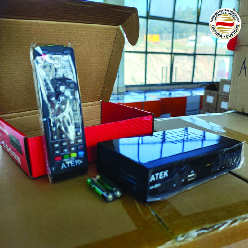 – 2.004 дигитални приемници АТЕК АК-2025, со вкупна вредност од вредност од 1,5 милиони денари се откриени при контрола на стока наменета за увозник од Скопје, пријавена за увозно царинење во царинската испостава Гевгелија. Откриените дигитални приемници кои не биле опфатени со царинските документи се запленети, а против сторителот е поведена соодветна постапка.