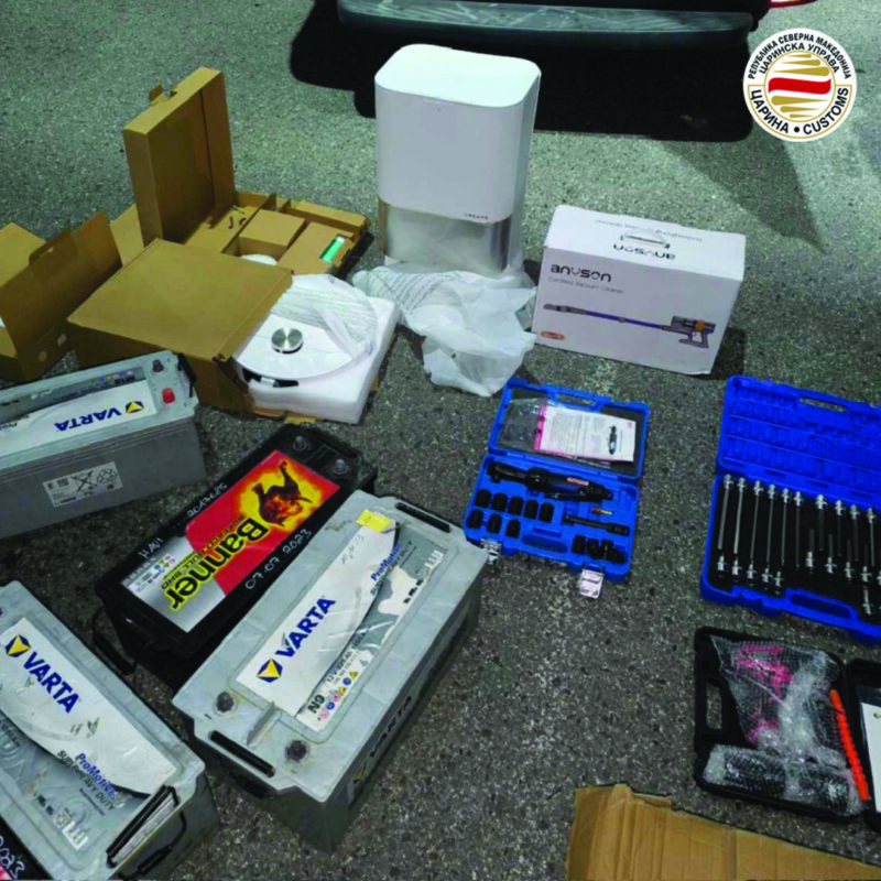 – Пет употребувани акумулатори, комплети рачни алати, сталажа за алат, комплет робот-правосмукалка марка Dreame X40 Ultra robot се откриени од Службата за мобилни скенери, при контрола на камион на влез во државата на Табановце. Непријавените производи се пронајдени во кабината и во товарниот дел на камион-кипер со австриски привремени таблички, управуван од македонски државјанин.