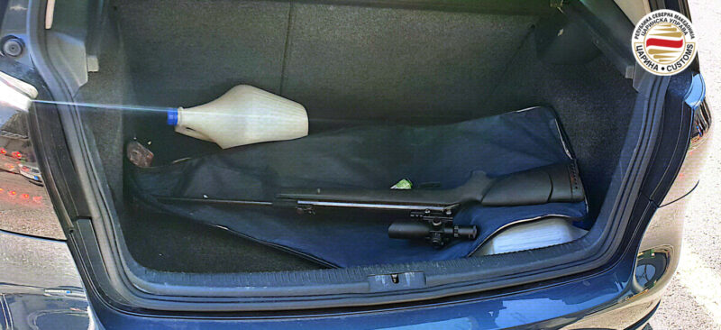Воздушна пушка GAMO/SPAIN, модел BIG CAT 1000-E, со оптички нишан и ласер, е пронајдена во багажникот на автомобил со српски регистарски таблички со кој српски државјанин се пријавил за влез во државата на граничниот премин Табановце.