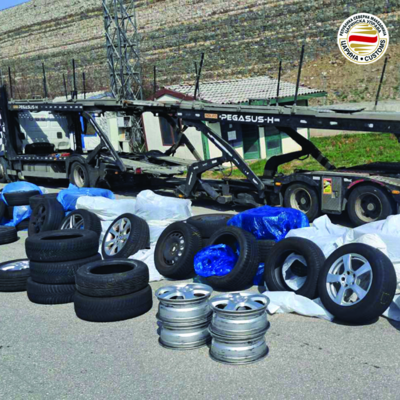 Царински службеници од граничен премин Блаце, царинска испостава Гевгелија, и Дојран спречија криумчарење на разна стока, меѓу која гуми со бандажи, антифриз, делови за туш кабини со вкупна вредност од околу 300 илјади денари.