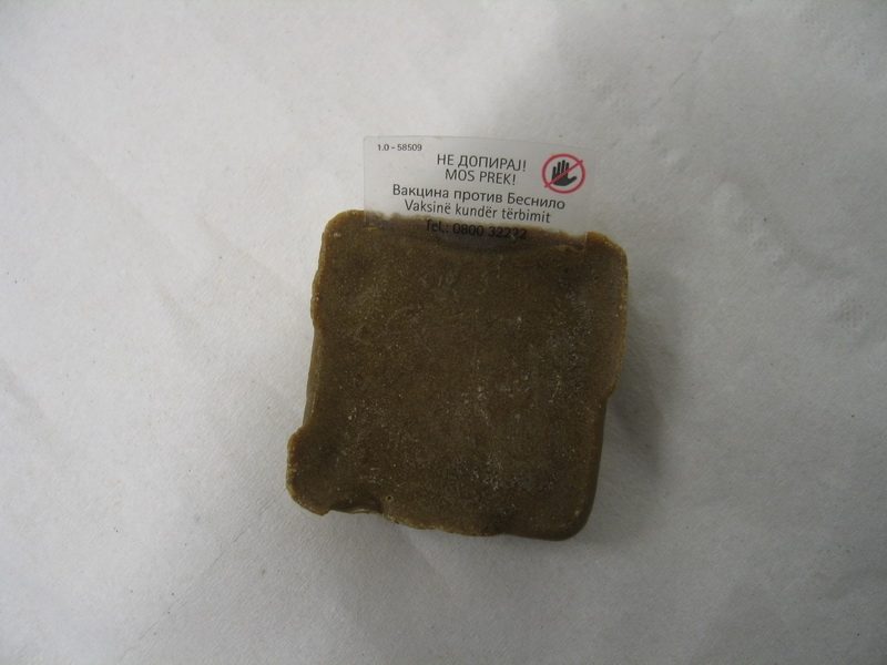 „Апелираме до граѓаните во наредните денови исклучително внимателно да се движат во природа, да внимаваат и никако да не ги допираат со раце вакциналните мамки, кои се во кафеава боја и личат на чоколадни коцки. Во нив е сместена пластична капсула во која се наоѓа вакцината во течна состојба. Доколку, сепак, се случи мамката да се допре, рацете да се измијат со обилно количество вода и сапун, а доколку мамката дојде во контакт со устата, задолжително да се побара и лекарска помош“.