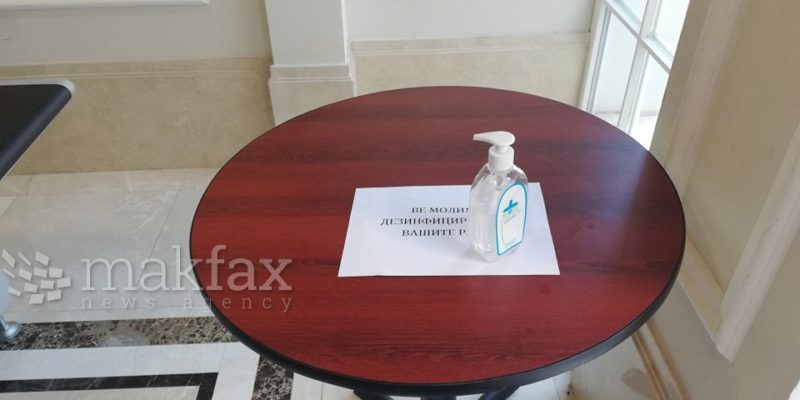 Откако министерот за здравство, Венко Филипче, денеска информираше за нов сет мерки во однос на заштитата од коронавирусот, чекори за претпазливост се преземаат и во прес-центарот на владата.